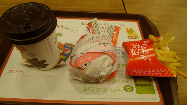 Sebelum keluar dari Lotte World, kitorang singgah lunch/dinner kat Lotteria. Lotteria ni kira macam mcD lah. order shrimp/squid burger set. Dah demam tu, sila la minum hot tea sahaja ye. Satu set dalam KRW5,000. Highly recommended! Sedap!